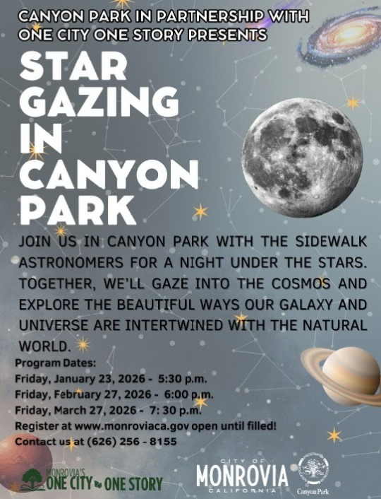 Telescopes in Monrovia Canyon Park Tonight (Friday 03/27) & our regular monthly sidewalk night tomorrow (Saturday 03/28)